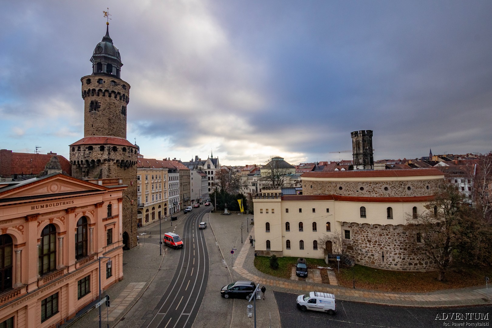 Okolica, w której stoi dom towarowy jest bardzo wielkomiejska i znów odnosimy wrażenie, jakbyśmy byli znacznie większym mieście, niż 50-tysięczne Görlitz jest w rzeczywistości. Widać to na przykład na Postplatz, kolejnym rozległym placu pełnym pięknych budowli, na deptaku Berliner Strasse, przy którym trafiamy do pięknego zadaszonego pasażu handlowego Otto Strassburga z 1907 roku, czy na niezliczonej ilości ulic z jasnymi strojnymi kamienicami. Bodaj najpiękniejszym zaułkiem jest rozwidlenie Berliner Strasse oraz Salomon Strasse, przy którym stoi piękny narożny budynek z przyjemną kawiarnią.